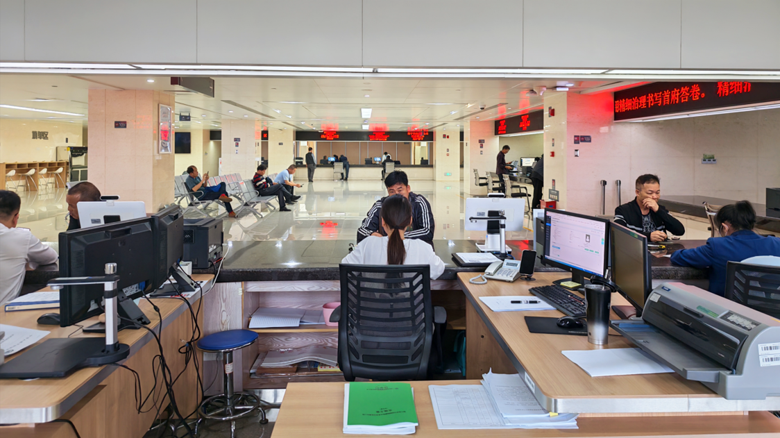 南宁市民中心办事窗口正在为道路运输从业人员办理业务