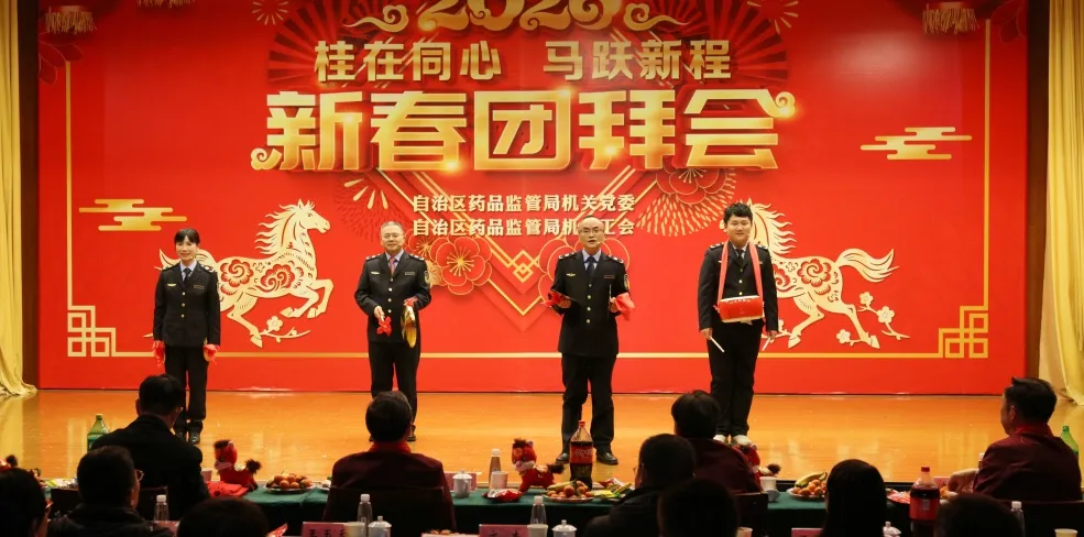 整场团拜会节目精彩纷呈,高潮迭起,充分展现了广西药监人团结奋进的精神风貌和“桂在同心”的凝聚之力。2026年,广西药监系统将继续在局党组的坚强领导下,同心协力,奋楫争先,为筑牢药品安全防线、促进医药产业高质量发展、守护人民健康福祉作出新的更大贡献。