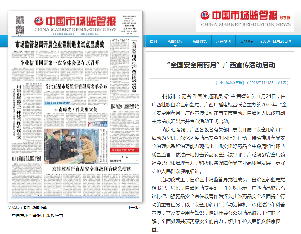 据悉,2023年“全国安全用药月”广西宣传活动将持续到12月中旬。活动期间,广西各级药品监管部门将结合实际、突出特色在自治区各地组织开展形式多样、内容丰富的宣传活动。